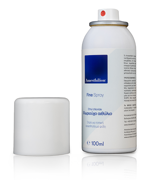 Το Anaesthilion® Spray, με τη δραστική ουσία αιθυλοχλωρίδιο (ethyl chloride), είναι ένα πρωτοποριακό προϊόν που προσφέρει άμεση και προσωρινή ανακούφιση από τον πόνο που σχετίζεται με ιατρικές και επιφανειακές δερματολογικές διαδικασίες. Είναι ιδανικό για: